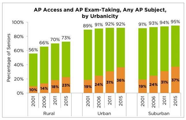 A new assessment has found that students in rural areas are rapidly catching up on Advanced Placement (AP) testing compared to their urban and suburban peers.