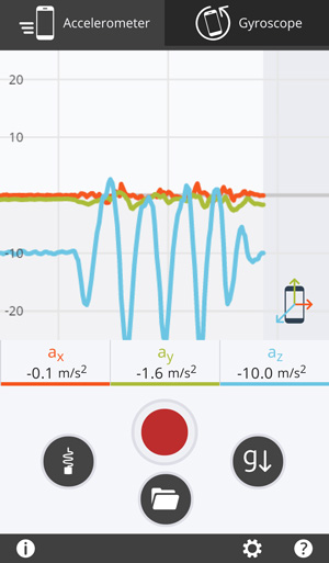 Here is how it works: In a given lab, students are first presented with a concept or challenge that requires them to set up and conduct an experiment. They begin by considering the problem and then downloading the MyTech app to their iOS or Android phones. They configure the app for their experiment and set up any necessary equipment, such as a pendulum or cart (where the phone will be attached). Students use the app to record data over the course of the experiment. For example, they might attach their phone to a cart and push the cart into a spring while recording the accelerometer data to analyze the motion of the device. They then review the data on the device or e-mail themselves the data to do more in-depth analysis in tools such as Excel or Google Sheets.